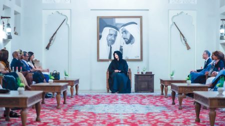 حضر اللقاء، سمو الشيخ حامد بن زايد آل نهيان والشيخ محمد بن حمد بن طحنون آل نهيان مستشار صاحب السمو رئيس الدولة وعدد من الوزراء وكبار المسؤولين في الدولة.