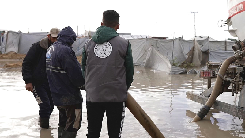 ومع غزارة الأمطار، وغرق العديد من الشوارع، وتسرّب المياه إلى الخيام المتضررة، فعّلت العملية الإماراتية آلياتها لسحب المياه، والتي تم إرسالها مسبقاً ضمن خطة الطوارئ لمواجهة الأوضاع المناخية الصعبة، وتسهيل حركة مرور السكان في المناطق المغمورة.