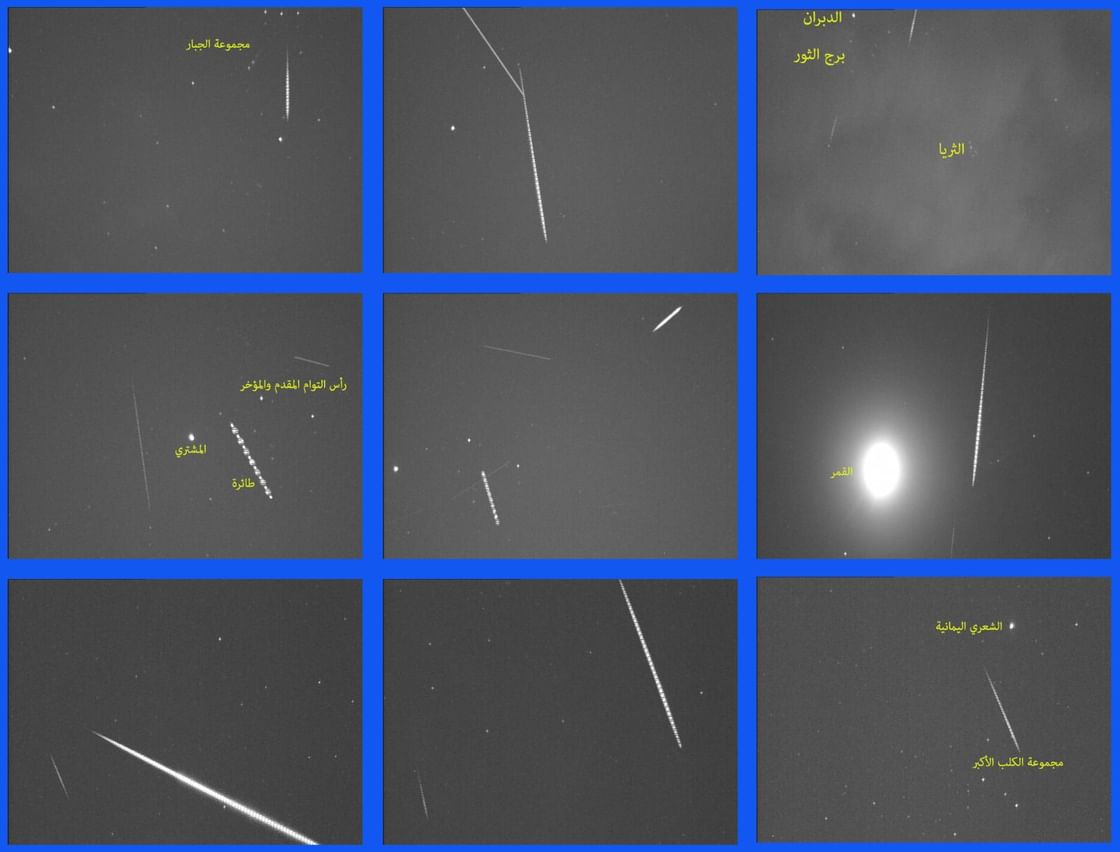 وقال: “بعد تصوير الشهب، تقوم المحطات بشكل آلي بتحليل الصور، وتحديد مسار ولمعان كل شهاب، وبعد ذلك ترسل المعلومات إلى مركز فلكي في الولايات المتحدة في تعاون دولي يجمع المركز مع شبكات عالمية أخرى مماثلة بإشراف وكالة الفضاء الأمريكية “ناسا”. ومرفق بعض صور الشهب المميزة التي تم تصويرها”.