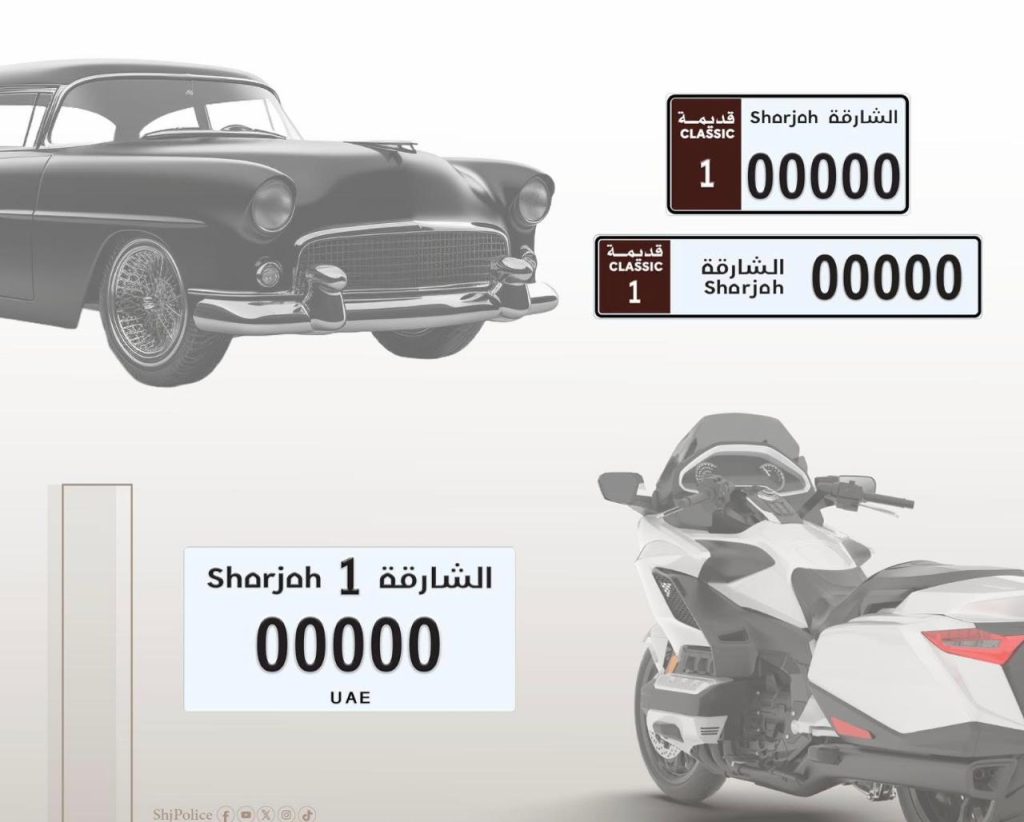 طرحت القيادة العامة لشرطة الشارقة فئة جديدة من لوحات المركبات الكلاسيكية والدراجات النارية، تشمل الفئة الأولى، وذلك في إطار تعزيز الهوية البصرية لإمارة الشارقة، وتماشياً مع التحديث المستمر في تصميم لوحات أرقام المركبات، وبما يجسد البعد الحضاري للإمارة.