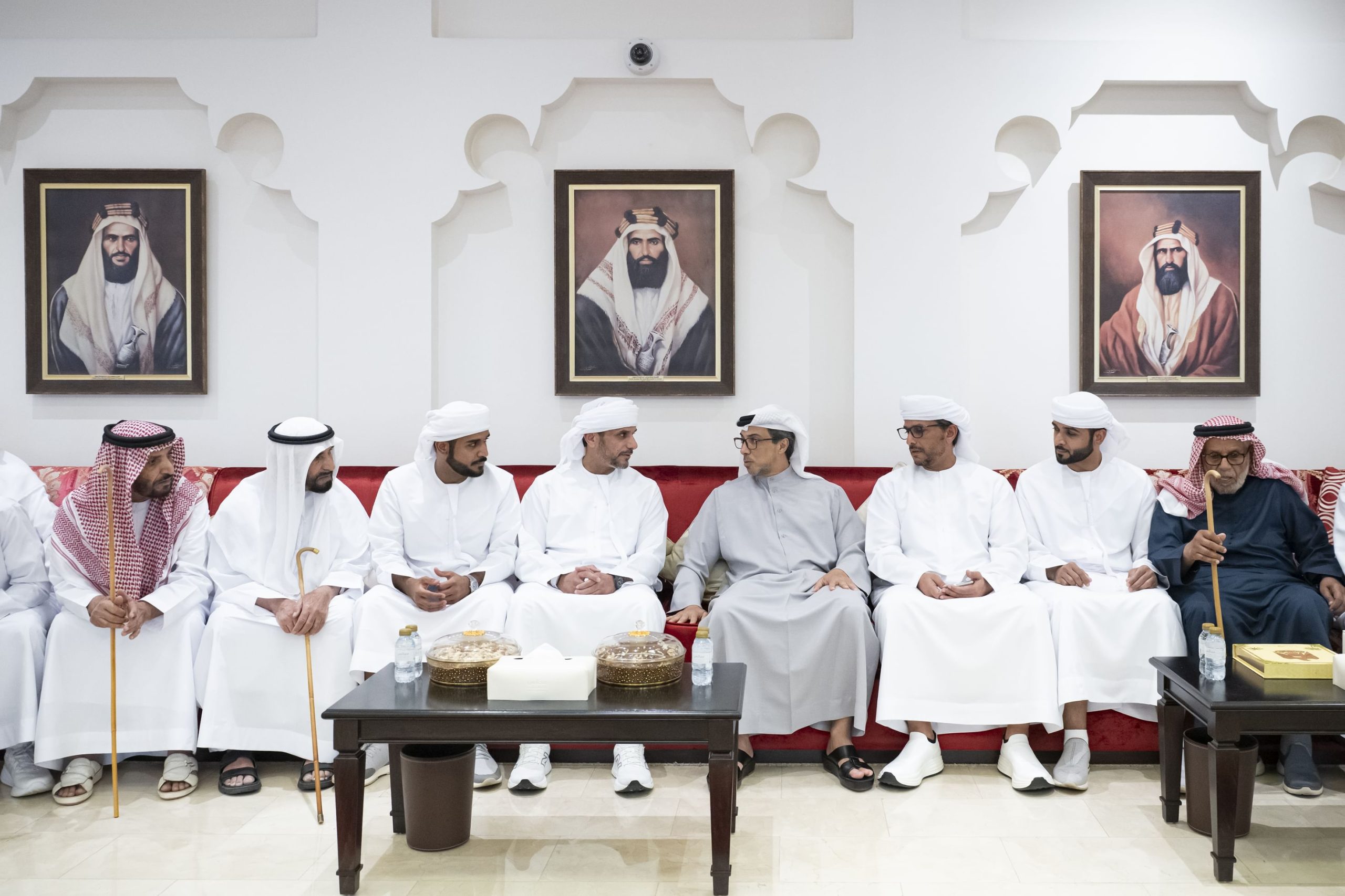 قدم سمو الشيخ منصور بن زايد آل نهيان، نائب رئيس الدولة، نائب رئيس مجلس الوزراء، رئيس ديوان الرئاسة، اليوم، العزاء في وفاة المغفور له معتوق حربي بن ثنيه العامري.