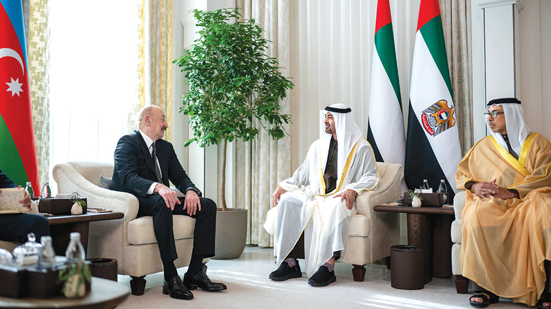 جاء ذلك، خلال استقبال صاحب السمو رئيس الدولة، بقصر الشاطئ في أبوظبي، إلهام علييف الذي يقوم بزيارة عمل إلى الدولة.
