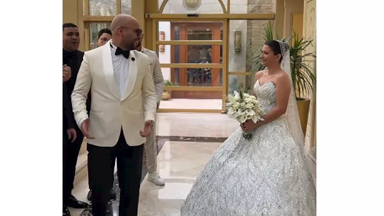 خضع العروسان لجلسة تصوير رومانسية، إذ ظهر حاتم صلاح ممسكا بيد زوجته وسط سعادة غامرة بدخوله عش الزوجية.