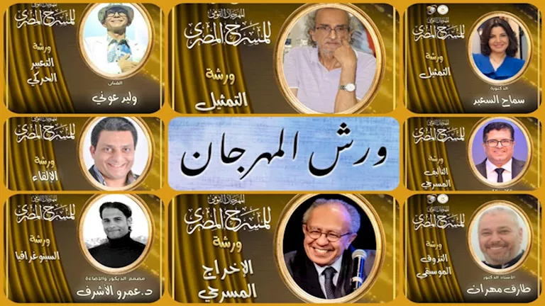 أما ورشة الإلقاء، يقدمها الدكتور جهاد أبو العينين، المتخصص في فنون الإلقاء والأداء الصوتي، وستركز الورشة على تطوير مهارات الإلقاء لدى الممثل، وتحسين مخارج الحروف، والتحكم في طبقات الصوت، واستخدام الإلقاء في إيصال المعنى والتأثير في الجمهور، أما ورشة التأليف المسرحي، يقدمها الكاتب الكبير أيمن سلامة، صاحب البصمة المميزة في عالم الكتابة المسرحية، والتليفزيونية، وستتناول الورشة أسس الكتابة المسرحية، وكيفية بناء الحبكة والشخصيات والحوار، وتطوير رؤية الكاتب المسرحي.
