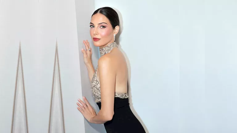 وارتدت رزان فستانًا طويلًا يجمع بين اللونين الأسود والبيج، مزخرف عند الصدر، بقصة ضيقة تُبرز القوام، ونسقت معه تسريحة شعر مرفوعة ومكياج هادئ.
