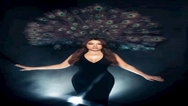 ونشرت هيفاء صورًا لها عبر حسابها الرسمي بموقع “انستجرام”، وظهرت بإطلالة غريبة ترتدي ذيل “الطاووس” مثل التاجر فوق رأسها.