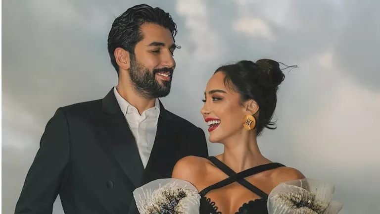 شاركت الفنانة بسمة بوسيل جمهورها صورًا جديدة ظهرت خلالها برفقة منسق الأزياء مساعد الصقر.