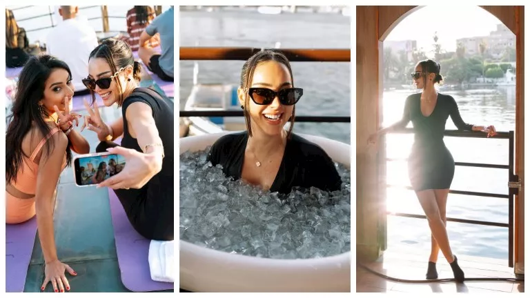 ونشرت بسمة جلسة تصوير عبر حسابها الرسمي بموقع “انستجرام”، ظهرت فيها تقوم ببعض التدريبات الرياضية، وتوثيق تجربتها في “حمامات الثلج” داخل أحد الأندية النهرية بجوار النيل.