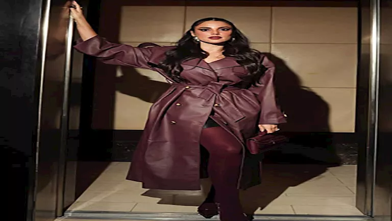 وظهرت درة بإطلالة أنيقة وجريئة، حيث ارتدت معطف جلد طويل باللون العنابي، ونسقت معه حذاء بنفس اللون.