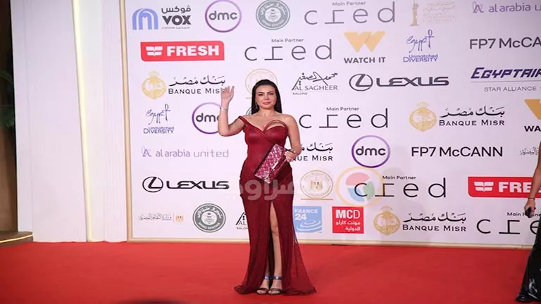 التقطت دينا فؤاد صورًا تذكارية على ريد كاربت المهرجان، وظهرت مرتدية فستان أنيق وجذاب.