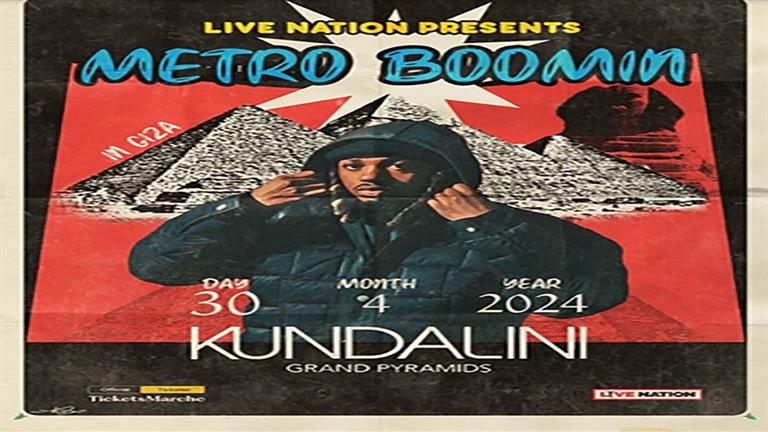 يستعد المغني والموزع الموسيقي الأمريكي العالمي ميترو بومين لإحياء حفلته الغنائية في مصر لأول مرة غدًا الثلاثاء 30 أبريل في منطقة الأهرامات وبالتحديد على مسرح كونداليني جراند بيراميدز.