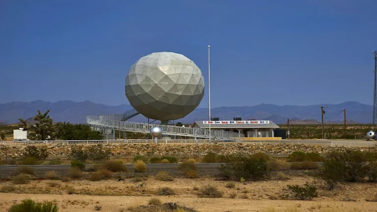 يبدو هذا المنزل وكأنه مزيج غريب بين كرة غولف ومركبة فضائية، وصُمم في الأصل كمطعم بطابع فضائي، قبل أن يتحول لاحقًا إلى مسكن فريد من ثلاثة طوابق، يمنح المنزل إطلالة صحراوية غير معتادة، حيث يشعر ساكنه وكأنه يعيش على سطح كوكب آخر، في تجربة سكنية تجمع بين العزلة والغرابة.