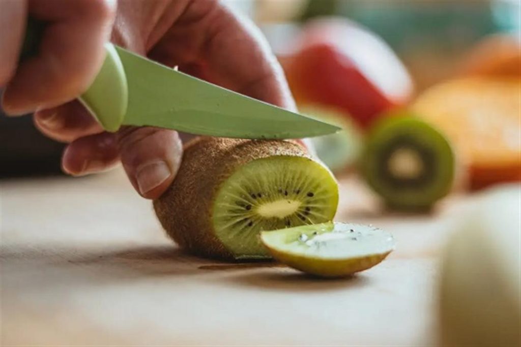 وتُعتبر إحدى الطرق السهلة للاستمتاع بالكيوي عبر تقطيع الفاكهة إلى نصفين، ثم تناول اللّب بالملعقة.