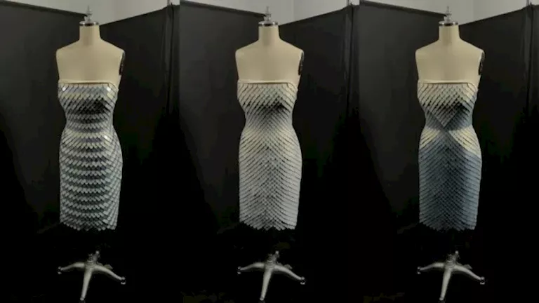 الفستان الذي حمل اسم «Primrose» قدمته الباحثة كريستين ديرك خلال فقرة Sneaks، حيث أدهش الحاضرين بقدرته على تغيير أنماطه وألوانه لحظيًا بمجرد لمسات بسيطة، لينتقل من درجات كريمية إلى فضية لامعة أو أشكال هندسية متغيرة، في مشهد يشبه تغير الحرباء.