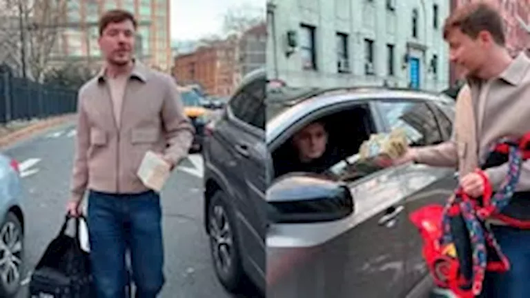 يُظهر الفيديو، الذي حقق ملايين المشاهدات خلال يوم واحد، دونالدسون وهو يسير بين السيارات المتوقفة على جانب الطريق، ويقدم “حزمة” من النقود للركاب الذين يفتحون نوافذ سياراتهم.