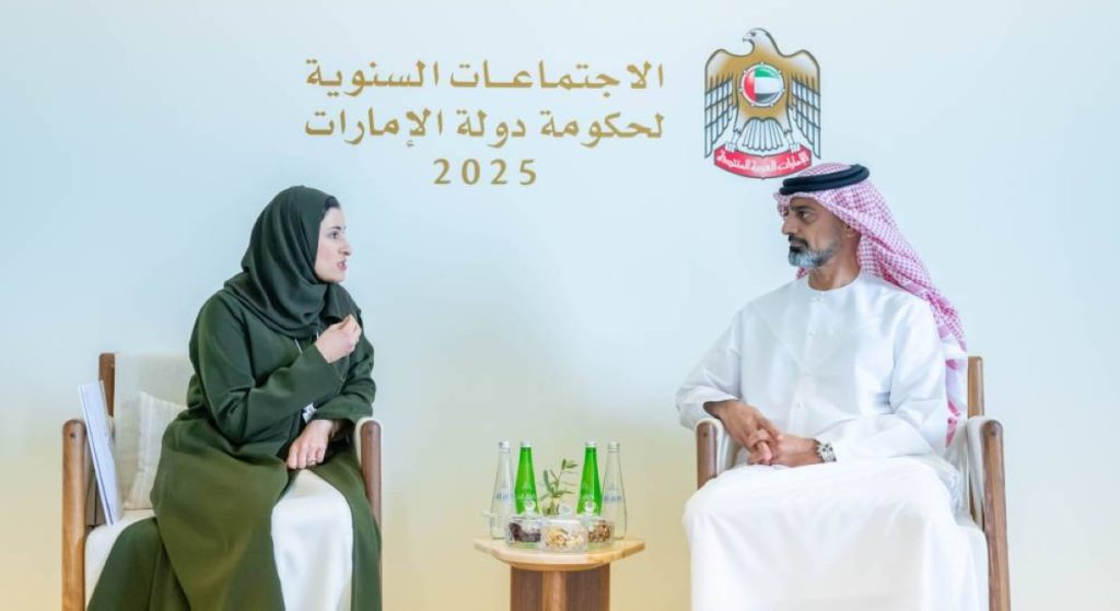 التقى سمو الشيخ عمار بن حميد النعيمي، ولي عهد عجمان، رئيس المجلس التنفيذي، معالي سارة بنت يوسف الأميري، وزيرة التربية والتعليم، وذلك على هامش الاجتماعات السنوية لحكومة دولة الإمارات 2025 في أبوظبي. وناقش اللقاء جهود تطوير منظومة التعليم في الدولة، وتعزيز تكامل الأدوار بين الحكومات المحلية ووزارة التربية والتعليم، لتحقيق مستهدفات الأجندة الوطنية، وبناء جيل وطني يمتلك مهارات المستقبل.