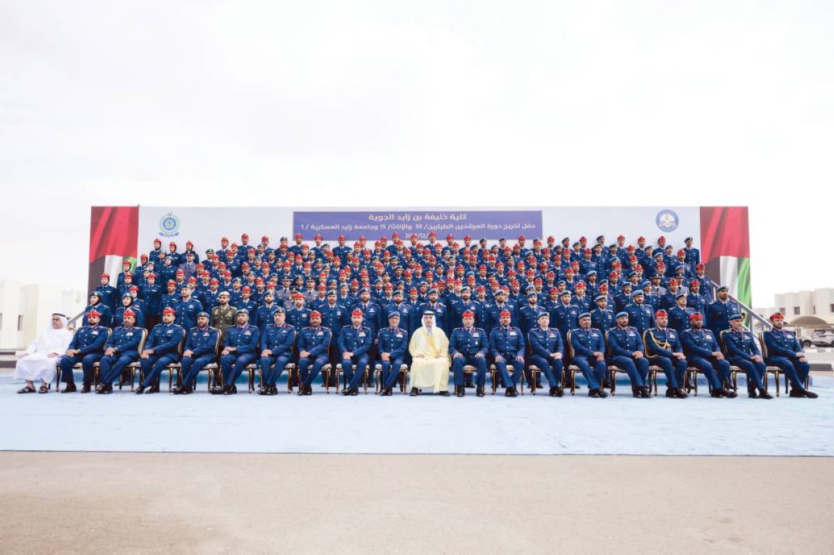 وقال سموه في تدوينة نشرها عبر حسابه في منصة «إكس»: «شهدنا حفل تخريج الدورة الـ 55 من المرشحين الطيارين ودورة الإناث الـ 15 لكلية خليفة بن زايد الجوية ودورة جامعة زايد العسكرية 1 في منطقة العين.