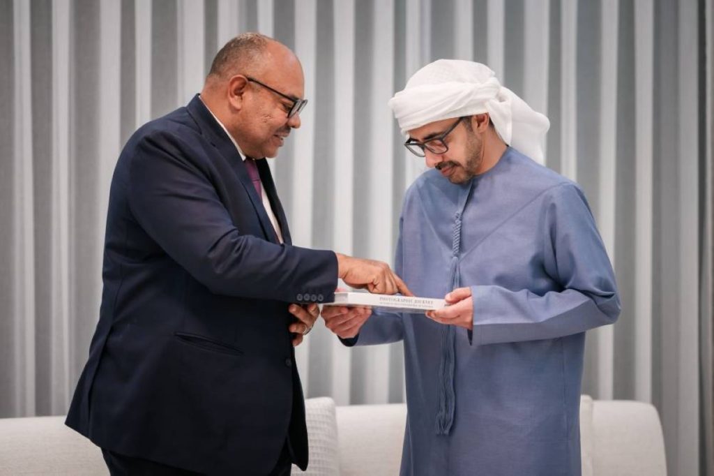 ورحب سمو الشيخ عبدالله بن زايد آل نهيان بزيارة محمود ثابت كومبو، مؤكداً على العلاقات المتميزة التي تجمع بين البلدين.