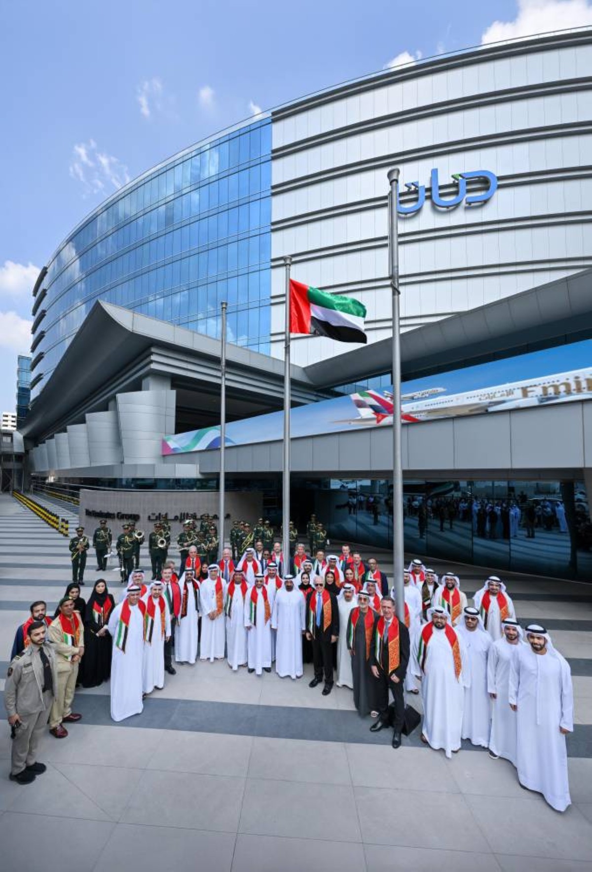 وشهد المناسبة الموظفون والعاملون في مختلف شركات مجموعة الإمارات، التي تحتفل بهذه المناسبة سنوياً للتعبير عن وفائهم وإخلاصهم في هذه المناسبة العزيزة، والاحتفال بمنجزات دولة الإمارات وازدهارها على جميع الصعد، ولا سيما قطاع الطيران. وقد رُفع علم الدولة على أنغام السلام الوطني الذي أدّته فرقة شرطة دبي الموسيقية.