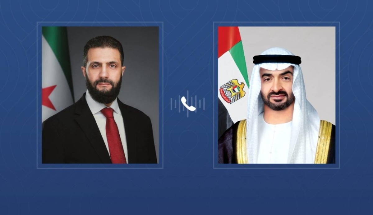 تلقى صاحب السمو الشيخ محمد بن زايد آل نهيان رئيس الدولة “حفظه الله” اليوم اتصالاً هاتفياً من فخامة أحمد الشرع رئيس الجمهورية العربية السورية.. بحثا خلاله العلاقات الأخوية وسبل تعزيز التعاون في مختلف المجالات بما يعود بالخير والنماء على البلدين وشعبيهما الشقيقين.