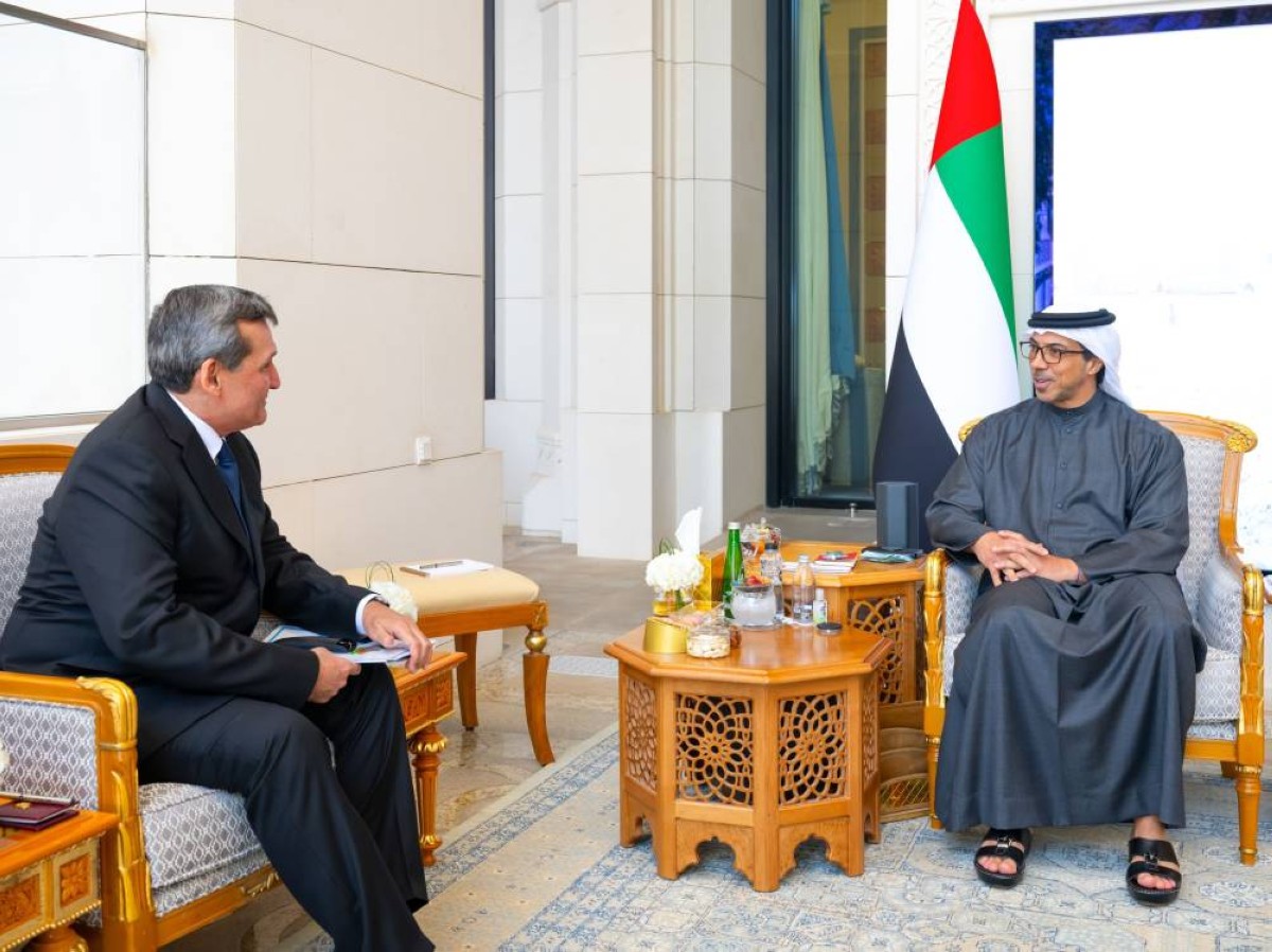 استقبل سمو الشيخ منصور بن زايد آل نهيان، نائب رئيس الدولة، نائب رئيس مجلس الوزراء، رئيس ديوان الرئاسة، أمس، بقصر الوطن في أبوظبي، رشيد ميردوف، نائب رئيس مجلس الوزراء وزير الخارجية في جمهورية تركمانستان. وجرى خلال اللقاء بحث سبل تعزيز التعاون المشترك بين دولة الإمارات وجمهورية تركمانستان في مختلف المجالات، بما يحقق المصالح المشتركة ويعود بالنفع على البلدين والشعبين الصديقين.