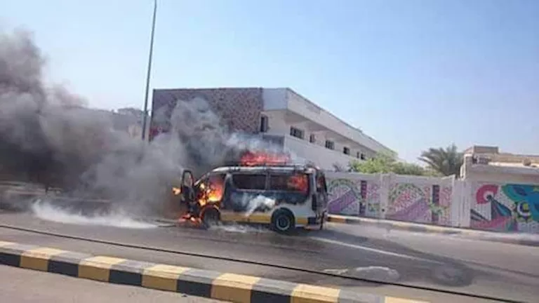 ودفع مدير إدارة الدفاع المدني بسيارتي إطفاء بقيادة نائبه وتبين اشتعال سيارة ميكروباص تابعة لإحدى الجهات أمام شركة هليوبوليس وتمام الإخماد.