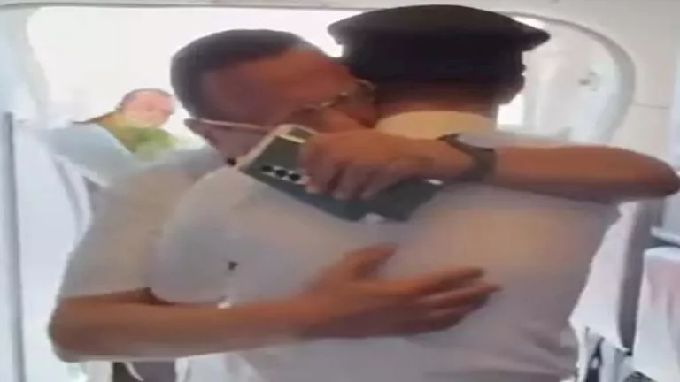 وظهر في الفيديو الأب وهو يصرخ من شدة الفرحة ثم يُعانق نجله مسرعًا ويدخل في نوبة من البكاء، وسط ترحيب وفرحة من طاقم الطائرة وركابها.