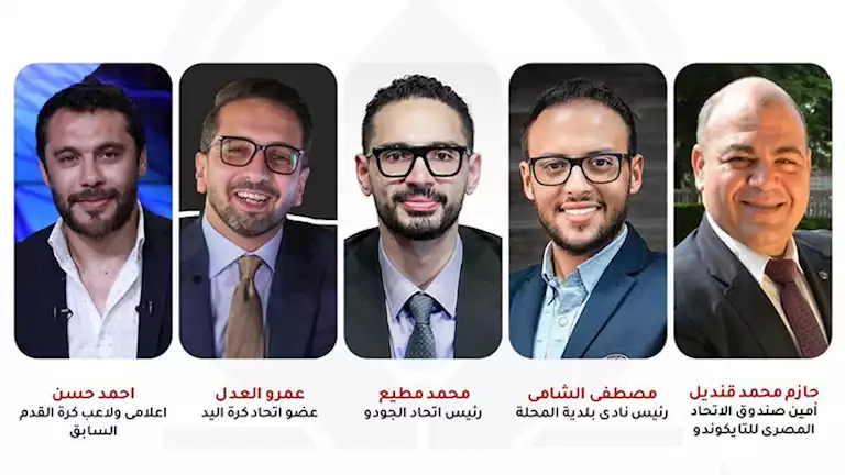 أعلن حزب الجبهة الوطنية، تحت التأسيس ضم مجموعة من الرموز الرياضية لعضويته وهم الكابتن أحمد حسن الإعلامي ولاعب كرة القدم السابق و محمد مطيع رئيس اتحاد الجودو والمهندس مصطفى الشامي رئيس نادى بلدية المحلة والدكتور عمرو العدل عضو اتحاد كرة اليد وحازم محمد قنديل أمين صندوق الاتحاد المصري للتايكوندو والمشرف علي منتخبات الباراتايكوندو وعضو الاتحاد الدولي للتايكوندو بلجنه الباراتايكوندو والمشرف علي الملف الإفريقي.