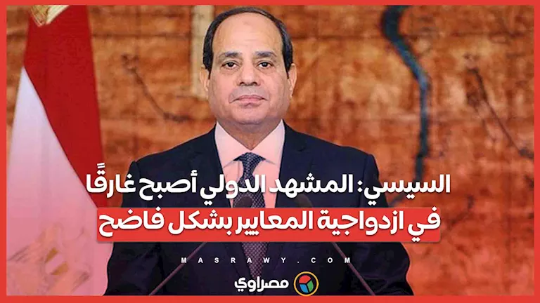 شاركها فيسبوك تويتر لينكدإن بينتيريست تيلقرام البريد الإلكتروني السيسي المشهد الدولي أصبح غارقًا في ازدواجية المعايير بشكل فاضح السيسي