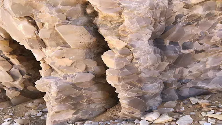 وأوضح جبيلي، أن آلية إعادة التبلور جرت بعد أن حوّلت الحبيبات الدقيقة إلى كريستالات أكبر طولًا قد يصل إلى 9–10 سنتيمترات، مشيرًا إلى أن اللون الأبيض الشفاف يظل السمة الغالبة، مع ظهور درجات مائلة للأحمر أو الأخضر تبعًا للشوائب المعدنية التي تحملها المياه خلال مساراتها في الصخور.