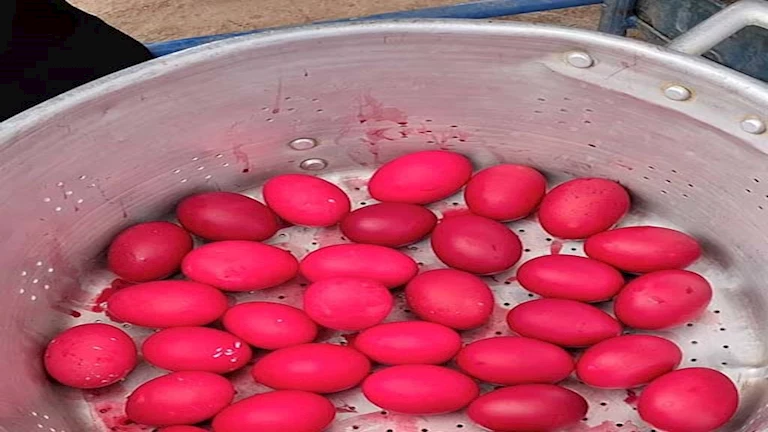 شارك الزوّار الأجانب من الطائفة القبطية الأرثوذكسية في سلق البيض وتلوينه، بمساعدة العاملين في الدير من أبناء المدينة، تمهيدًا لتوزيعه على زوار الدير عقب الانتهاء من الصلوات والطقوس التي يؤديها الرهبان.
