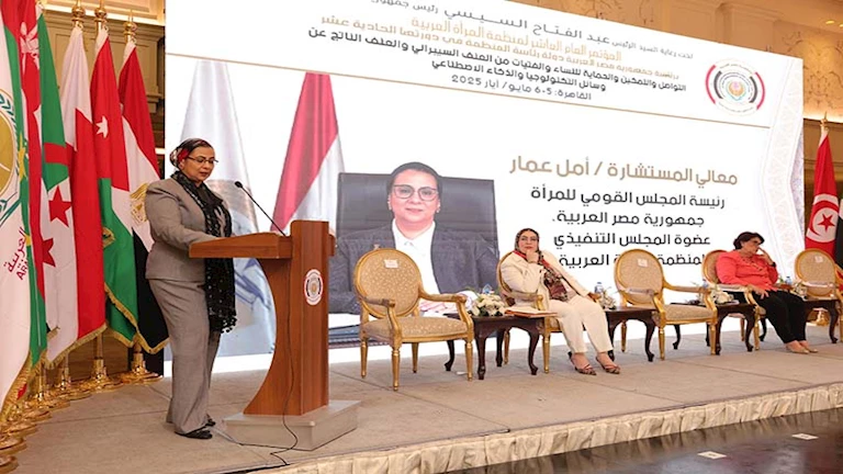 بحثت الجلسة الأولى ضمن فعاليات المؤتمر العام العاشر لمنظمة المرأة العربية، المنعقد تحت عنوان “التواصل والتمكين والحماية للنساء والفتيات من العنف السيبراني والعنف الناتج عن وسائل التكنولوجيا والذكاء الاصطناعي”، قضية “العنف ومنه العنف السيبراني”، وذلك في إطار تسليط الضوء على التحديات الناجمة عن التطور التكنولوجي المتسارع، وما يترتب عليه من أشكال جديدة للعنف الموجه ضد النساء والفتيات في الفضاء الرقمي.