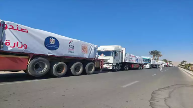 أفادت قناة “القاهرة الإخبارية” في نبأ عاجل بدخول 88 شاحنة مساعدات من بينها 5 شاحنات وقود إلى معبري العوجة وكرم أبو سالم منذ صباح اليوم وحتى الآن تمهيدا لدخولها قطاع غزة.