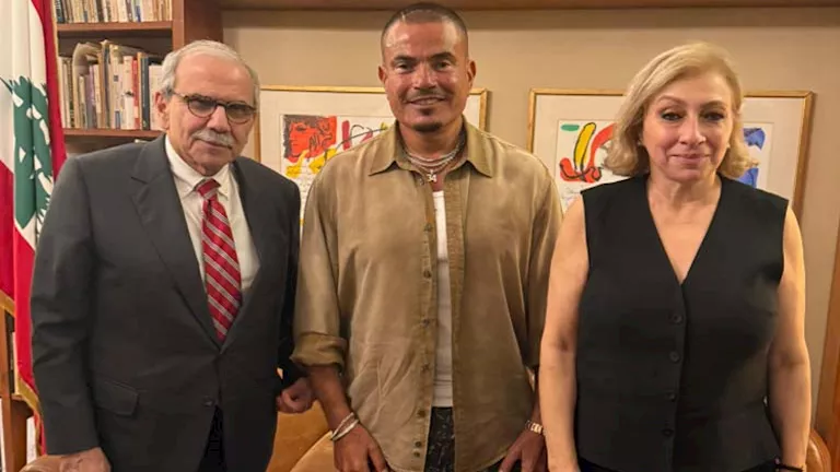 استقبل رئيس الوزراء اللبناني نوّاف سلام، الفنان عمرو دياب في منزله بمنطقة قريطم، اليوم السبت.