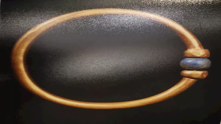 لم تكن مجرد قطعة ذهب، بل كانت قطعة أثرية فريدة من نوعها، مصنوعة من الذهب الخالص ومطعمة بخرز كروي من حجر اللازورد الأزرق الثمين، تحمل في طياتها تاريخ ملك وحضارة عظيمة.