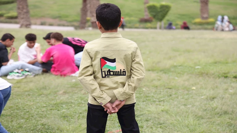 احتفل طفل بثاني أيام عيد الفطر المبارك لعام 2025، اليوم الثلاثاء 2 أبريل، في الحديقة الدولية، وهو يرتدي تي شيرت يتضمن “شعار فلسطين”؛ دعمًا للقضية الفلسطينية.