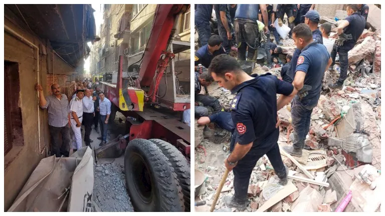 كان مركز سيطرة الشبكة الوطنية للطوارىء والسلامة العامة بمحافظة القاهرة وغرفة العمليات المركزية بالمحافظة قد تلقيا بلاغًا بانهيار العقارين.
