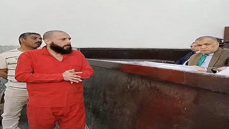 وكان المتهم ظهر داخل قفص الاتهام مرتديا البدلة الحمراء محتضنا المصحف، مرددًا عبارة: “أنا برئ من دم زوجتي”.