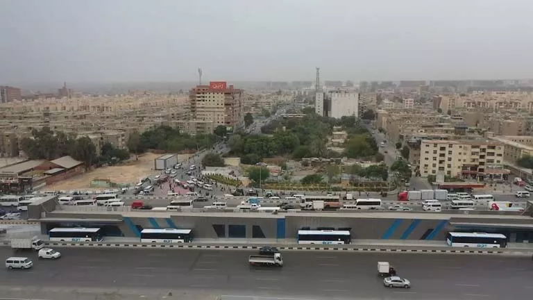 منطقة الأعمال بتقاطع طريق زويل مع طريق الواحات بالاتجاه المؤدى إلى طريق الفيوم، وذلك ضمن مشروع محطات الأتوبيس الترددى الذكى على الطريق الدائرى حول القاهرة الكبرى.