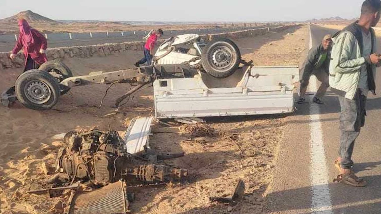 انتقلت الخدمات الأمنية والمرورية إلى محل البلاغ وتبين بالفحص انقلاب سيارة ربع نقل تقل مجموعة من العمال اتجاه الوادي الجديد.