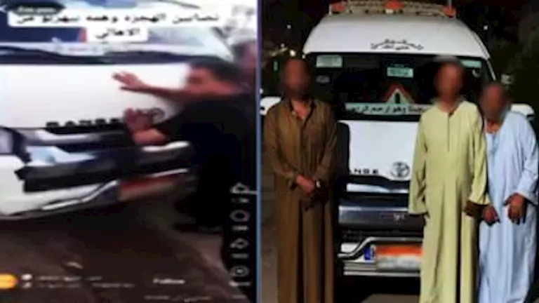بالفحص أمكن تحديد وضبط السيارة وقائدها سائق مقيم بمحافظة المنيا وبرفقته سائق آخر أقرا أنهما حال اصطحابهما أحد الأشخاص “تم ضبطه” – مطلوب التنفيذ عليه بالسجن 5 سنوات فى جناية هجرة غير شرعية – وزوجة ابنه وابنتيها من منطقة حدائق الأهرام بالجيزة بالسيارة قيادة الأول اعترض طريقهم بعض الأشخاص “الظاهرين بمقطع الفيديو”.