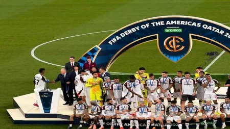 الدقيقة 45: حكم اللقاء يحتسب 4 دقائق وقت بدل ضائع.