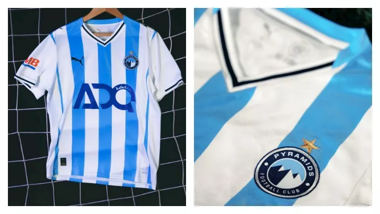 وجاء قميص بيراميدز الأساسي الجديد باللونين الأبيض والسماوي، وعليه نجمة بطولة أفريقيا التي حققها الفريق الموسم الماضي.