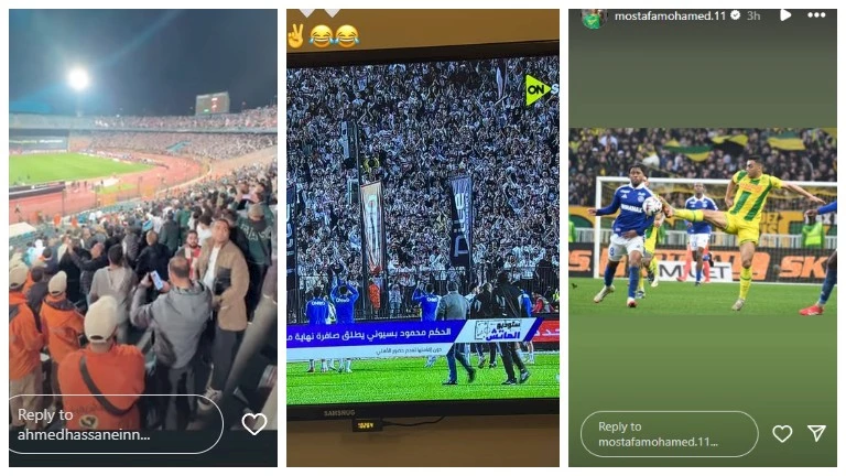 ونشر لاعبو الزمالك أحمد فتوح، محمد شحاتة، حسام أشرف وسيف فاروق جعفر ، صورا لهم من مباراة القمة التي شهدت انسحاب الأهلي، لاعتراضه على طاقم تحكيم المباراة، كما نشر أحمد خالد حسنين عضو مجلس إدارة الأبيض “ستوري” لجماهير الزمالك من الدرجات.