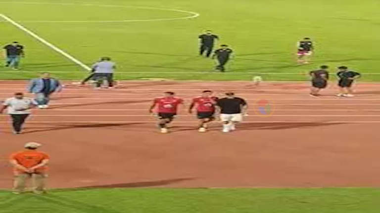 وبدأ الأحداث المثيرة مبكرا، حيث رصدت عدسة “مصراوي” سقوط أشرف داري على أرضية ملعب ستاد القاهرة أثناء الإحماءات، وسط ضحك طاهر محمد طاهر وجراديشار وأحمد نبيل كوكا.