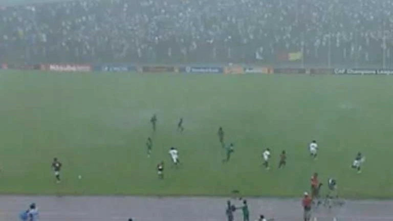 وقبل نهاية المباراة بما يقرب من 60 دقيقة، بدأ سقوط الأمطار بشكل قوي على أرضية الملعب، في الوقت الذي كان التعادل السلبي دون أهداف يسيطر على المباراة، ليضطر الحكم الزامبي جاني سيكازوي آنذاك إلى إلغاء المباراة.