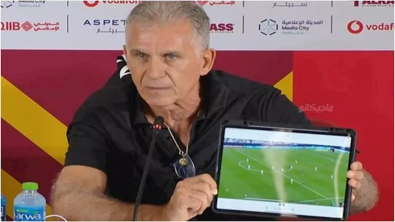 ولم يكتفِ بذلك بل ظهر كيروش ـ الذي سبق ودرب منتخب مصر ـ بلاب توب خلال لقاء تلفزيوني عقب المباراة لإثبات الأمر ذاته.