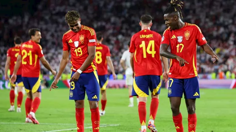 خط الهجوم: لامين يامال، نيكو ويليامز، يريمي بينو، داني أولمو، سامو، ألفارو موراتا، وأويارزابال.