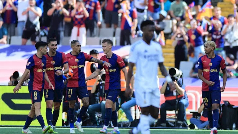 وكان تقدم برشلونة في المباراة عن طريق رافينيا الذي سجل الهدف الثالث في الدقيقة 34، وضاعف الجناح البرازيلي النتيجة للبارسا بعدها بـ 11 دقيقة، وقلص مبابي النتيجة للريال في الدقيقة 70 قبل أن تنتهي المباراة.