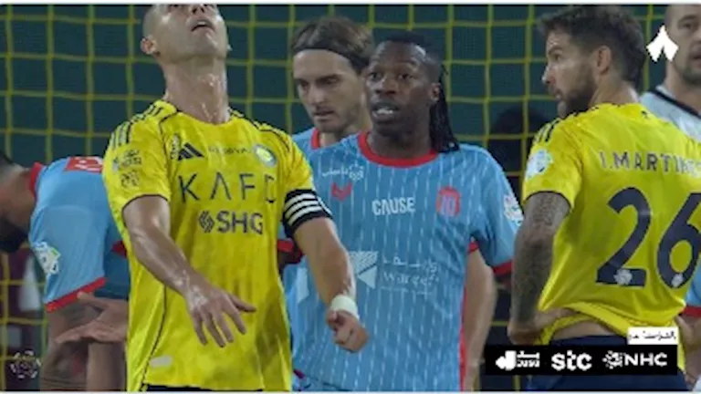 ظهر النجم البرتغالي بصفوف النصر كريستيانو رونالدو في لقطة غريبة وطريفة خلال مباراة فريقه ونظيره الرياض في الدوري السعودي.